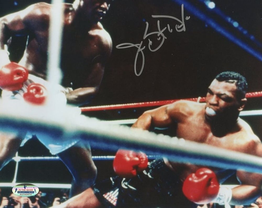 8x10 glossy photo hand-signed in silver paint pen by James "Buster" Douglas. Autograph includes a In The Game Collectibles hologram for authenticity purposes.