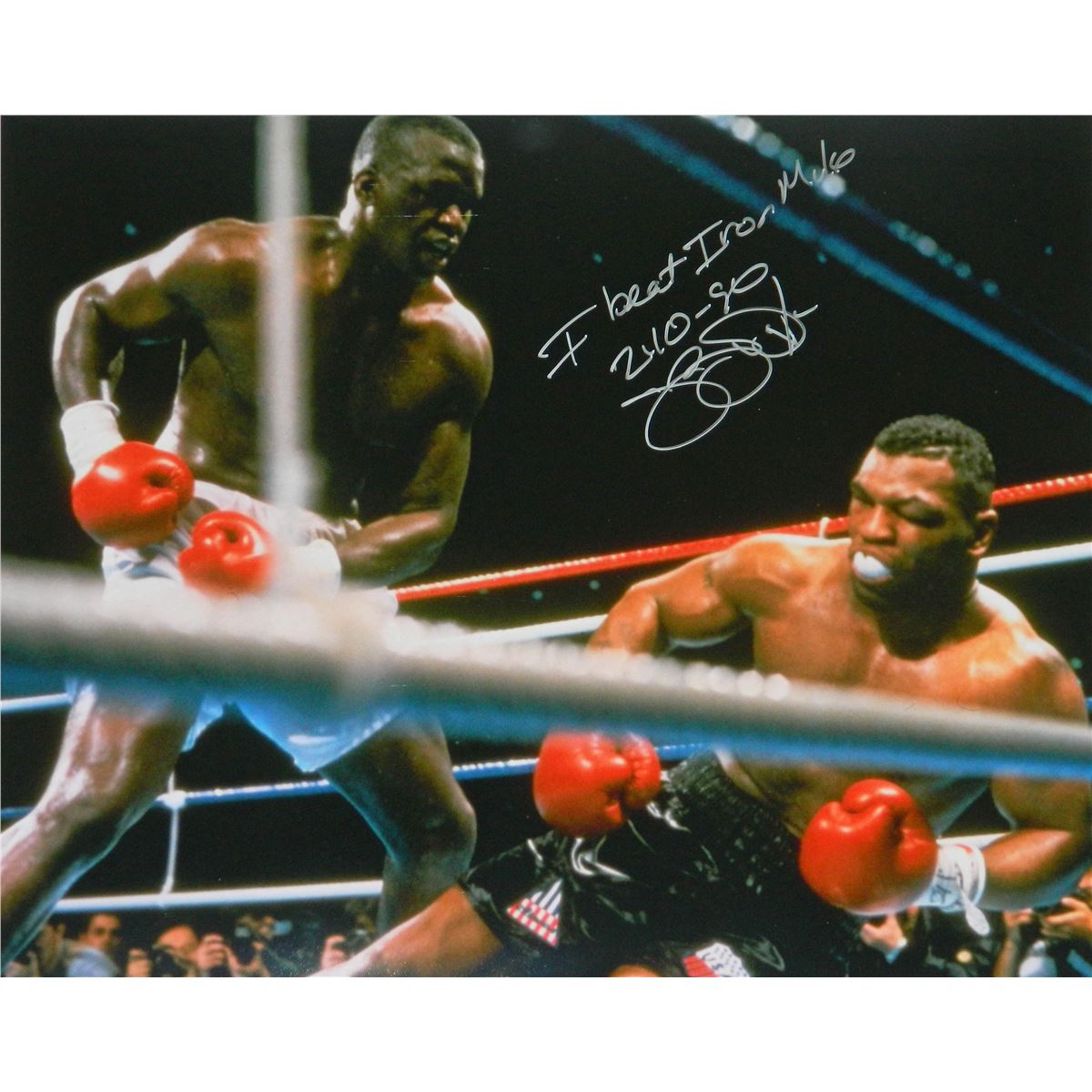 James Buster Douglas signed Boxing knocking down Mike Tyson 16x20 photo with 'I Beat Iron Mike 2-10-90' inscription. Image is from Buster Douglas' historic 42-1 underdog upset against Mike Tyson. Item comes with a Schwartz Sports Memorabilia tamper-proof numbered hologram and Certificate of Authenticity which can be verified online.