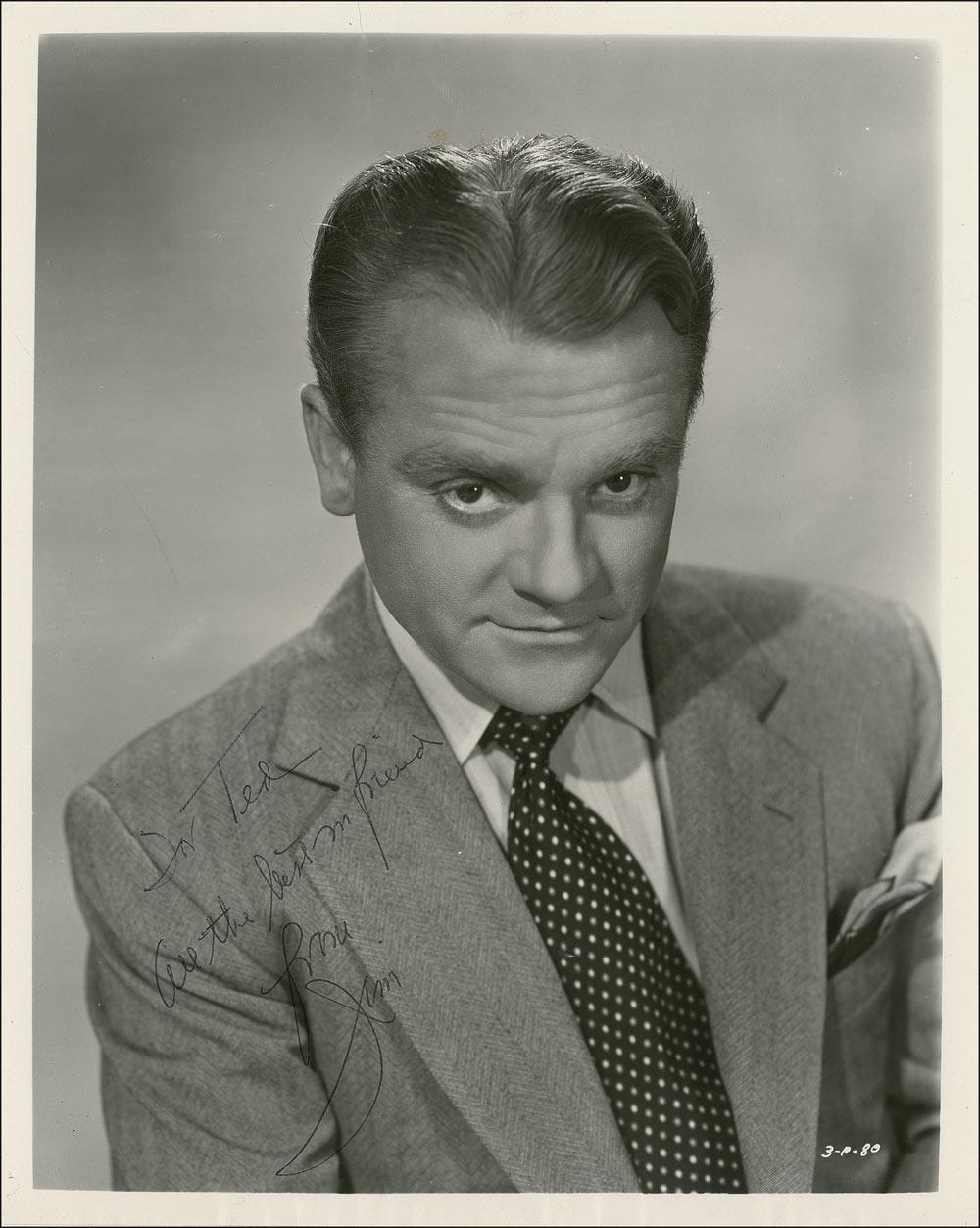 Vintage 8 x 10 lightweight photo, signed and inscribed in black ballpoint “For Ted, All the best my friend from Jim.” Rippling to horizontal edges, and some scattered light creases, otherwise fine condition. Ted Ashton, a Princeton graduate, began his motion picture career in 1947 in the publicity department at Warner Brothers. He soon became a unit publicist on many of the studios most successful films for the next 18 years. Among his many credits were Giant, Mister Roberts, Auntie Mame, East of Eden, Calamity Jane, The Green Berets, and Bound for Glory. Pre-certified PSA/DNA and RRAuction COA.