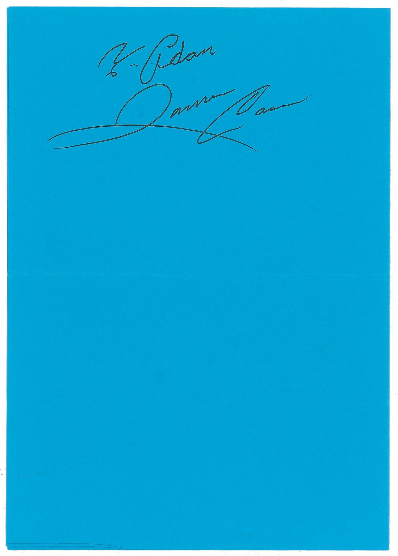 Memphis soul singer best known for his album You Got My Mind Messed Up and for his 1967 recording of 'The Dark End of the Street.' Carr was often referred to as 'the world's greatest soul singer.' Ink signature and inscription, "To Adam, James Carr,” on the reverse of a blue 11.75 x 8.25 handbill for The London Blues Festival at the Blackheath Concert Halls on May 25-26, 1996. In fine condition. Accompanied by an unsigned publicity photo of Carr.