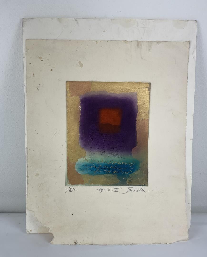 Nice etching. Artist is James Cox. Print has some areas of damage from improper storage as shown. 15" by 21" including backboard. James Cox is a British Postwar & Contemporary artist who was born in 1956. Their work was featured in several exhibitions at key galleries and museums, including the State Hermitage Museum.