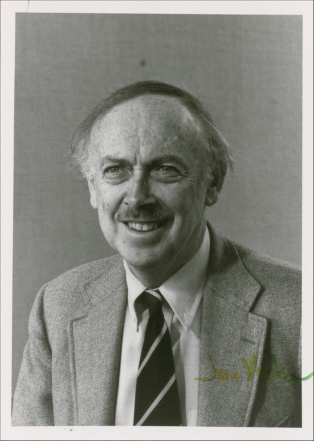 Glossy 5 x 7 photo, signed in green felt tip. In very good condition, with haloing and contrast to Watson’s light, but mostly legible signature.