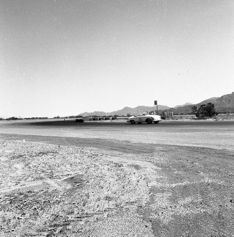 A James Dean celebration for fans and collectors. From the personal collection of Gus V. Vignolle, well known journalist, photographer and publisher of "MotoRacing", one of the first and most influential car racing newspapers of the 1950’s. This is one in a limited series of negatives that have been missing for over 50 years until recently re-discovered by Vignolle’s daughter, Zaz Clark. These intimate photos are of James Dean in and around his Speedster 23F Porsche (License Plate #2U73378). They were taken during his infamous car race in Palm Springs, California in March of 1955 not long before his accident in September of that year in his new Porsche Spyder 550 while on his way to a race in Salinas, California. These photographs only appeared once in the January 13th 1956 (Vol 1, No. 7) exclusive, fully-illustrated memorial issue of MotoRacing. This is the one and only original Black and White negative photographed and developed by Vignolle on Kodak Safety Film, taken at the race. It shows an action shot of James Dean racing his Porsche Speedster 23F that he had just purchased from Johnny von Neumann at Competition Motors in Hollywood. This was his first sport car race and was being staged by the CSCC at the Palm Springs Race Track. And this was the race that he won... his first official race... by 300 yards! The negative comes with a COA, plus full copyright release for unlimited reproduction printing to the winning bidder. The Negative is carefully packed in a wax envelope, and includes a positive proof photo. Also Includes a copy of the MotoRacing issue. (Negative approx. 2 3/8" x 2 3/8" & photo approx. 5" x 4").