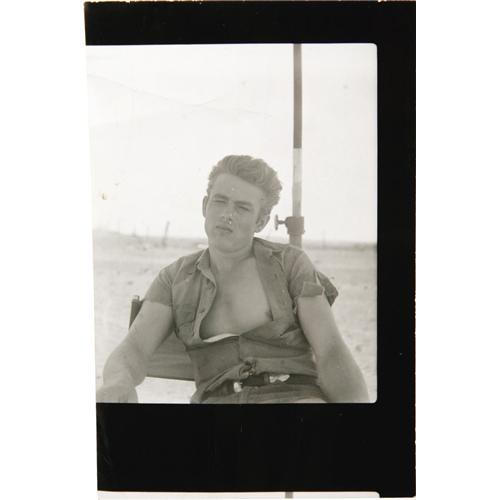 <B>James Dean Rare Snapshot.</B></I> A rare, unpublished b&w 3" x 3.5" photo of Dean at an outdoor location believed to be the set of <I>Giant.</B></I> In Excellent condition with minimal wear.<BR><BR><b>Shipping:</b> Flat Material, Small (<a target="_blank" href="http://www.heritageauctions.com/common/shipping.php">view shipping information</a>) <BR><BR><B>Important not