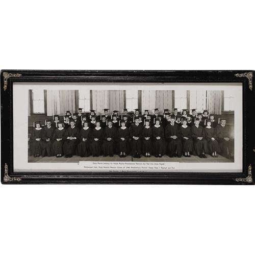 <B>James Dean Senior Class Photo.</B></I> A b&w photo of Fairmount High School's Class of '49, with a senior and future film legend named James Dean seated in the front row on the far right. In Excellent condition, framed to an overall size of 21.5" x 10".<I>From the Robert Johnson Memorabilia Collection.</B></I><BR><BR><b>Shipping:</b> Flat Material, Small (<a target="_blank" href="http://www.heritageauctions.com/common/shipping.php">view shipping information</a>) <BR><BR><B>Important notice:<