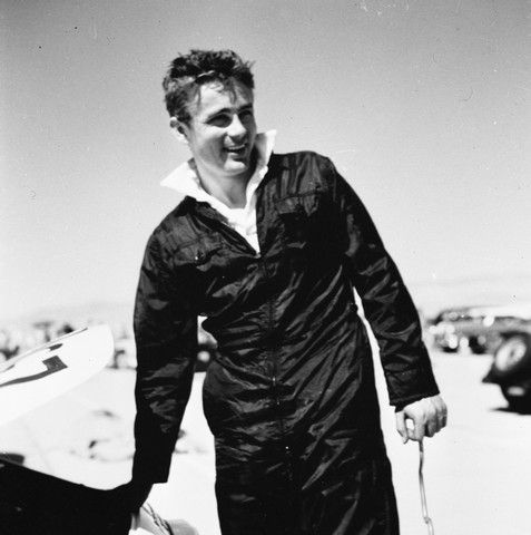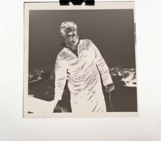 Rare and wonderful for all James Dean fans and collectors. From the personal collection of Gus V. Vignolle, well known journalist, photographer and publisher of "MotoRacing", one of the first and most influential car racing newspapers of the 1950’s. This is one in a limited series of negatives that have been missing for over 50 years until recently re-discovered by Vignolle’s daughter, Zaz Clark. These intimate photos are of James Dean in and around his Speedster 23F Porsche (License Plate #2U73378) that he bought at Competition Motors in Hollywood. They were taken during his infamous car race in Palm Springs, California in March of 1955 which was his first official race, and which he won not long before his accident in September of that year in his new Porsche Spyder 550 while on his way to a race in Salinas, California. These photographs only appeared once in the January 13th 1956 (Vol 1, No. 7) exclusive, fully-illustrated memorial issue of MotoRacing. This is a Black and White inter-negative made by Vignolle from his original color negative on Kodak Safety Film, taken at the race. Because the series of color negatives have been lost this is the only negative in existence of this photo. It shows a side of Dean rarely seen. He looks absolutely boyish (rather than his usually brutish), with the most delightful full grin and bright eyes. According to Vignolle, he took this shot right after Dean figured out the problem with his motor, all on his own, and just minutes before the race was to begin. This was taken just at the moment with the Porsche 23F Speedster was "humming" the way it should after Dean's intense "fiddling" with it. The negative comes with a COA, plus full copyright release for unlimited reproduction printing to the winning bidder. The Negative is carefully packed in a wax envelope, and includes a positive proof photo. Also Includes a copy of the MotoRacing issue. (Negative approx. 2 3/8" x 2 3/8" & photo approx. 5" x 4").