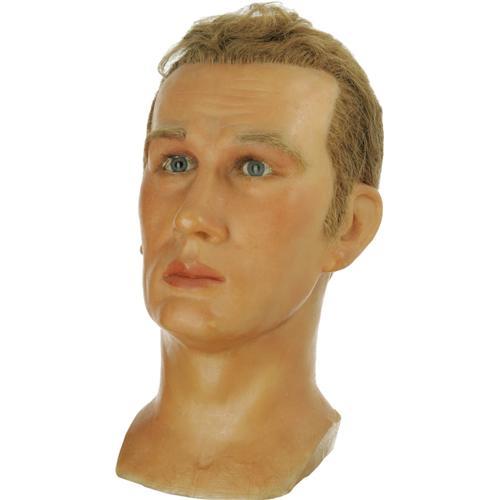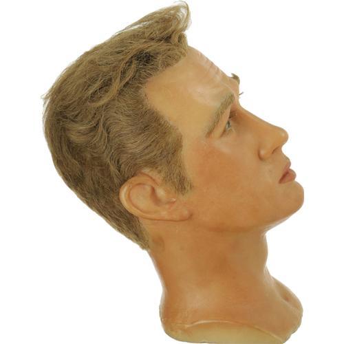 <B>James Dean Wax Head.</B></I> A rare wax replica of Dean from a display at Coney Island's now shuttered The World In Wax Museum, founded by Ms. Lillie Santangelo in 1926. The museum featured wax figures of various politicians, celebrities, and infamous murderers -- mostly the latter. The head is in Excellent condition, which is rare given its age and fragile nature. <I>From the James Dean Museum archive.</B></I><BR><BR><b>Shipping:</b> Miscellaneous Collectibles, Larg (<a target="_blank" href="http://www.heritageauctions.com/common/shipping.php">view shipping information</a>) <BR><BR><B>Importan