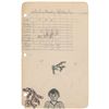 After Dean's mother died in 1940, his father, unable to care for the nine-year-old alone, sent him to be raised by his sister and her husband, Ortense and Marcus Winslow, in Fairmount, Indiana. Here Jimmy Dean was overcome by loneliness from the loss of his mother and felt abandoned by his father—a distance that grew when the elder Dean was drafted into the Army Medical Corps at the outset of World War II, during the same period that this schoolwork is from. The distress Dean experienced as he struggled to find himself is palpable, signing his name over and over as he seeks an identity—is he "Jimmie Dean," "Jim," "Jimmie," or "J"? Is he lefty or righty? What is his daily routine? As time progressed, he began to call the Winslows 'Mom and Dad,' and emulated much of his uncle's style and mannerisms—he began wearing a t-shirt and blue jeans, and slouched a bit when he walked. In addition to the general interest as very early material from the Hollywood icon's life, it comes from a pivotal moment during Dean's formative years as he began to grow into the man he would become. In 1941, the ten-year-old James Dean performed in his very first play, entitled 'To Them That Sleep in Darkness.'