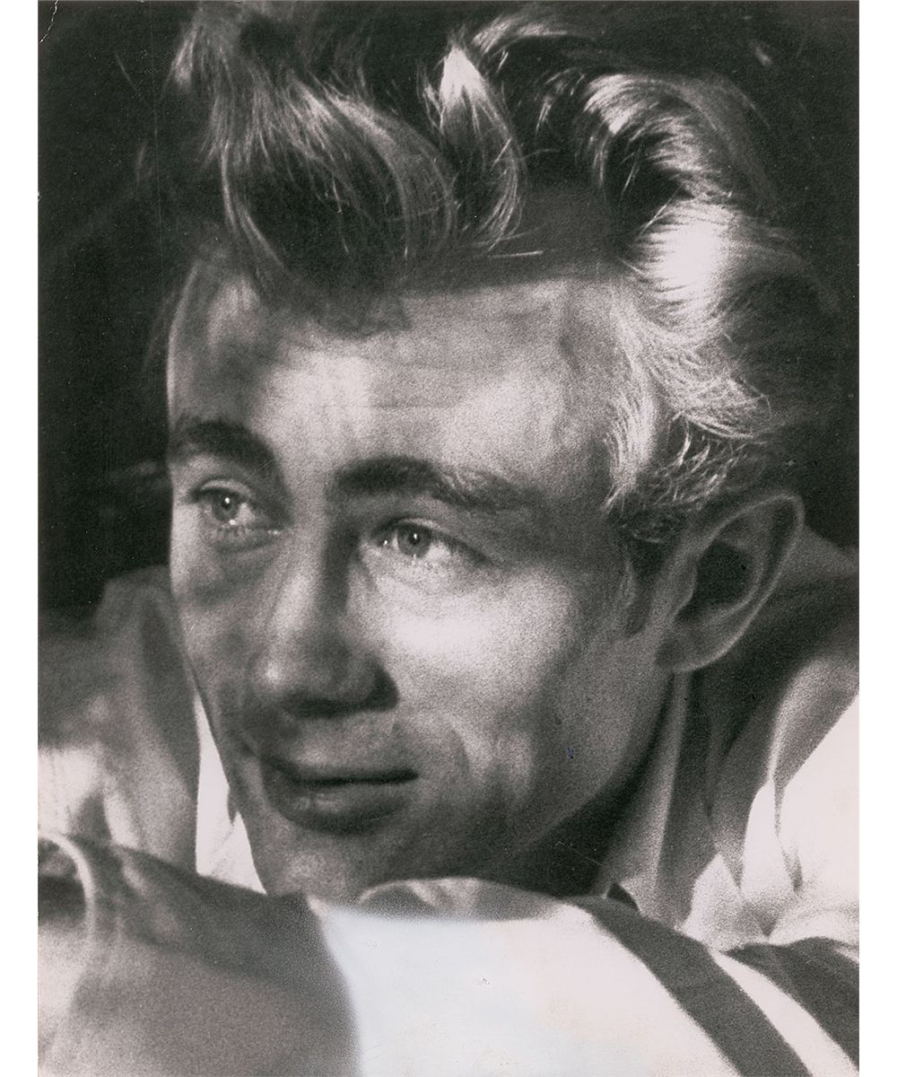 Classic original matte-finish 10.25 x 13.5 close-up portrait of Dean by internationally renowned photographer Sanford H. Roth, bearing his photographer’s stamp on the reverse and a notation indicating that it was published on page 33 of a July 1957 magazine. In fine condition, with a small crease to the upper left corner tip. Roth’s photographs were used in such magazines as Time, Life, Look, Harper's Bazaar, and Vogue, though he is especially known for his exquisite images of James Dean.