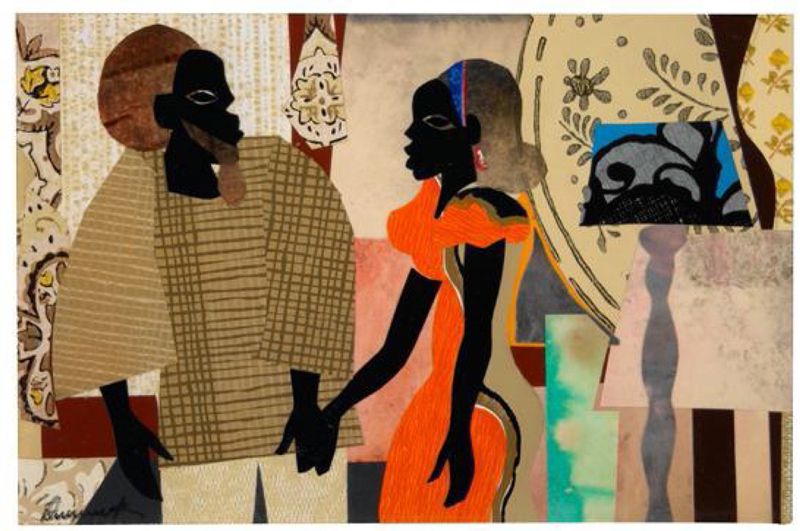 Medium: Collage of Printed Papers and Fabric on Masonite, signed in ink l.l.