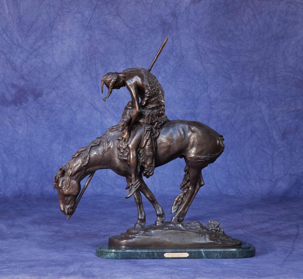 End of Trail 28” tall, 30” long, 9” deep Bronze Signed in bronze J.E. Fraser 38/150 Casting date unknown
