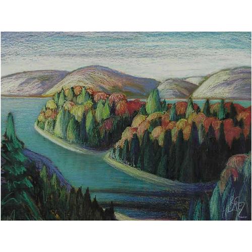 Canadian [b. 1961] ABOVE THE MONTREAL RIVER, FALL; 1994 mixed media on board 10.5 x 14 in. (26.7 x 35.6 cm) signed, titled & dated Provenance: East Queen Gallery, Toronto