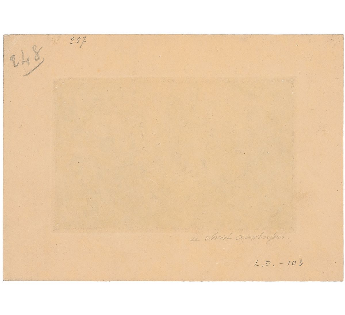 Belgian painter and printmaker (1860–1949) who was an important influence on expressionism and surrealism. Rare etching by Ensor entitled ‘Christ Descending Into Hell,’ 7.75 x 5.5, lightly signed and dated below the image in pencil, “James Ensor, 1895,” and titled on the reverse, “Le Christ aux Enfers.” In fine condition, with the signature very light but mostly legible.