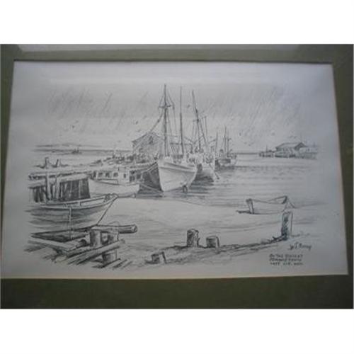 This wonderful print from the mid 20th century is marked: On The Beach AT Province Town. Cape Cod, Mass. in the lower right hand side and signed: Jas F Murray. Pencil Etched by the famous and listed artist Jas F Murray who was born James Francis Murray on September 28th 1899 in Lawrence Massachusetts and passed away in 1990 in Tewksbury, Massachusetts. Circa late 1950's to early 1960's this beachfront scene is matted under a green matt and gold metal framed under glass but really needs to be reframed which I will leave to the new owners taste and decor. In great condition the print measures 10 inches high and 14 inches long while the frame measures 12 3/4 inches high and 17 inches long. An addition to any room decor or James F Murray Collection. <BR>SH & Ins will be quoted after orders placed. If you have questions feel free to contact me and thank you for looking.