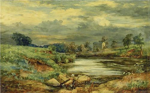 James Faed Jr. - UNTITLED (STONE COTTAGE BY A POND)