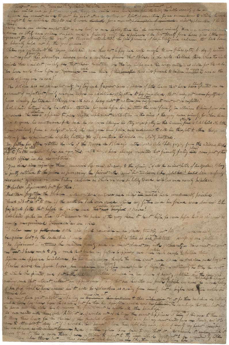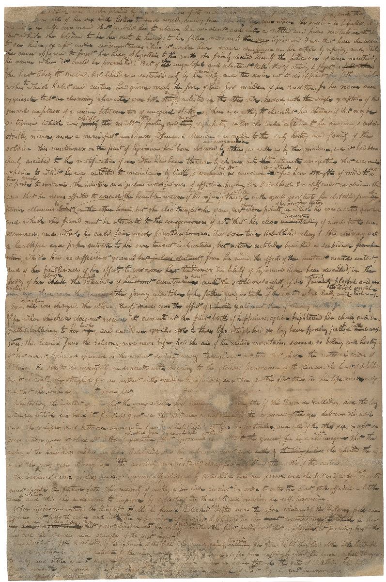 This manuscript excerpt features the novel’s two leading characters: Adelheid, the beautiful daughter of Melchior, Baron de Willading, and Sigismund, secret son of the headsman Balthazar, and if discovered, heir to the dreaded position of public executioner. Cooper deftly weaves the tale of this pair, desperately in love but unable to marry because of their vastly different social stations, to provide an insightful sociopolitical critique of the gruesome hereditary position. A rare and fantastic fragment.