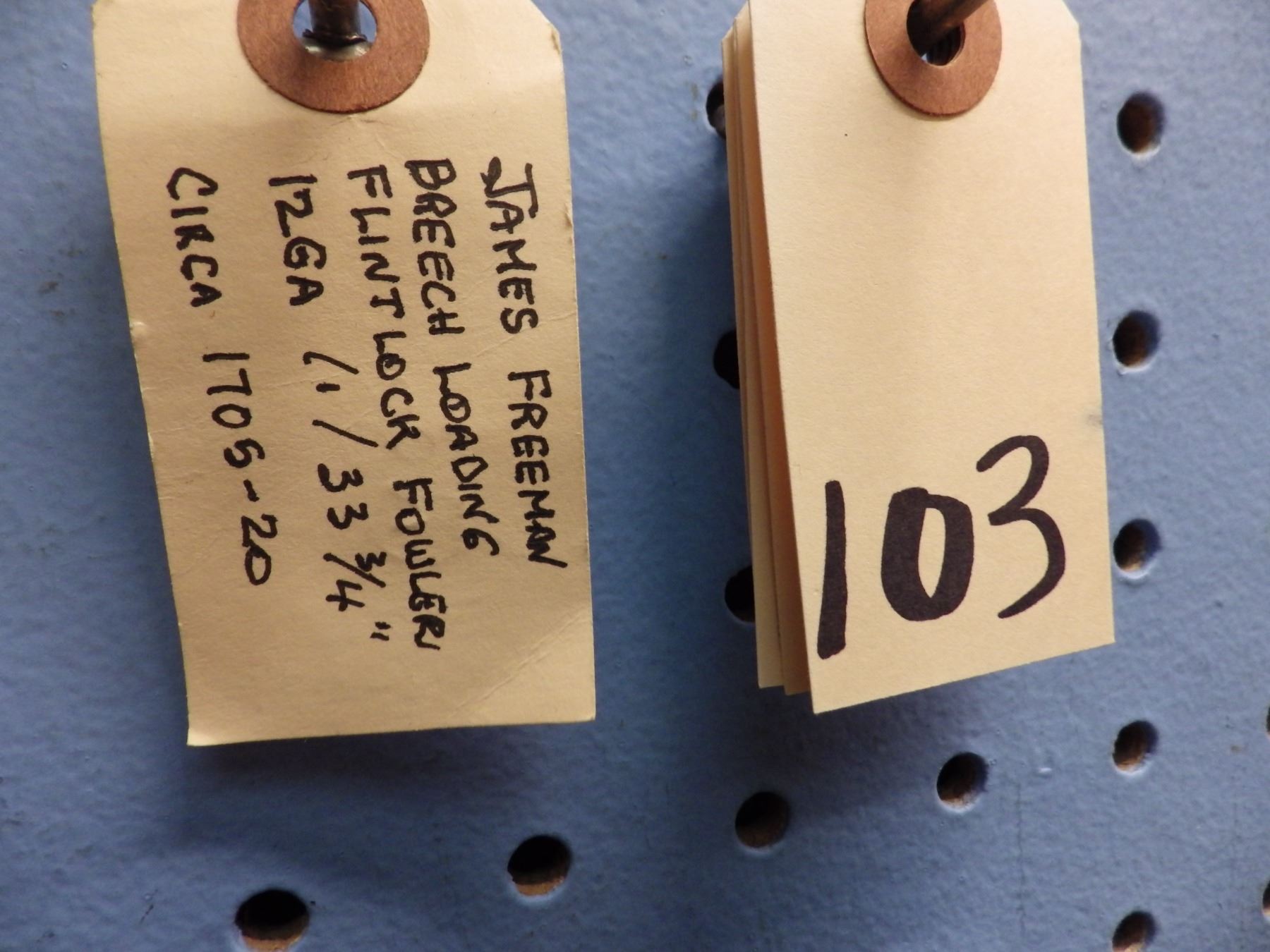 James Freeman breech loading flintlock Fowler 12ga barrel 33 3/4 " long, circa 1705-20… CONSIGNOR # G83