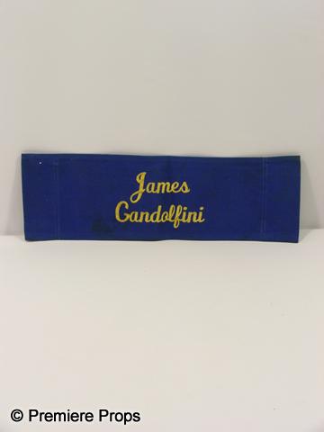 Blue with James Gandolfini in gold cursive chairback. (approx. 20" x 6 1/2")