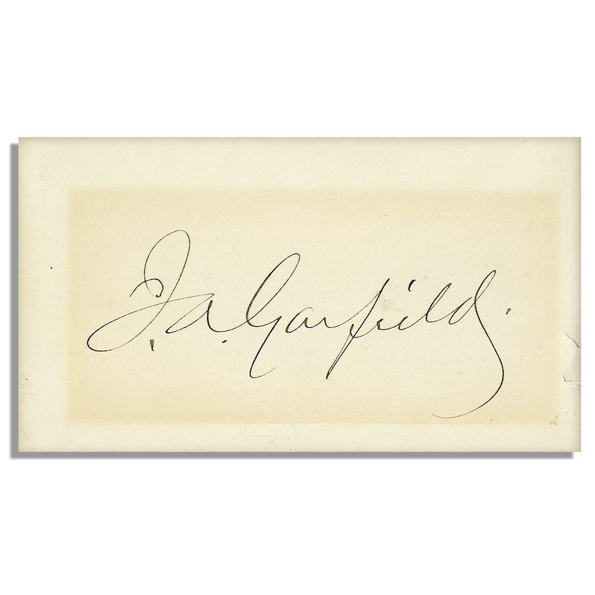 James A. Garfield Card Signed ''J. A. Garfield'' boldly in black ink. Signed on a small card measuring 3.5'' x 2''. Some minor toning, else near fine.