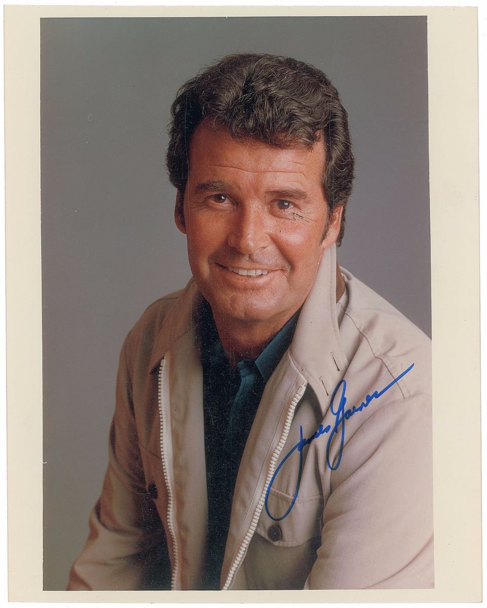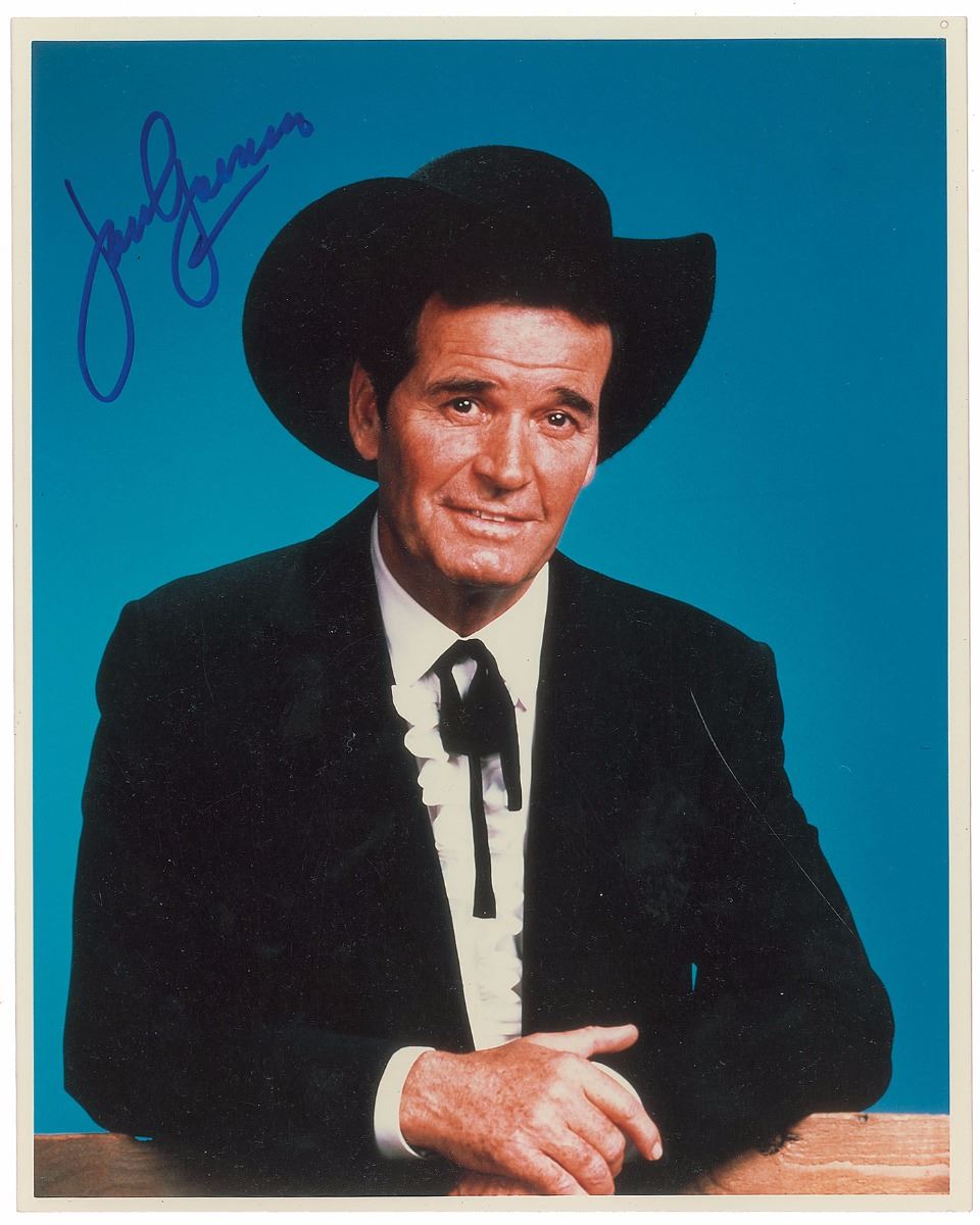 Set of three color glossy and satin-finish 8 x 10 photos of Garner, each signed in blue felt tip. In overall fine condition, with a stray ink mark near Garner’s eye on the satin-finish photo.