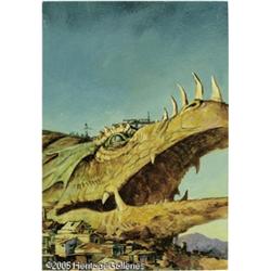<B>James Gurney - Fantasy and Science Fiction Magazine Cover Study Original Art (1984).</B></I> Dinotopia creator James Gurney rendered this detailed study of "The Man Who Painted the Dragon Griaule" for the December, 1984 issue of <B>Fantasy and Science Fiction</B></I> magazine. The acrylic on board painting has an image area of 9" x 6.75", and is in Excellent condition. <I>From the collection of Richard and Wendy Pini. Richard says: "Jim Gurney was just beginning to explore the lands of 'Dinotopia' when he sketched out this study for a cover painting. I saw it in the art show of a science fiction convention and thought it was simply and wonderfully weird, the sort of painting that invites a storytelling interpretation. What exactly is going on here?"</B></I>