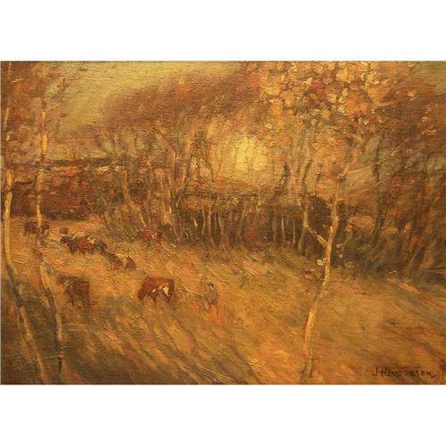 Canadian [1871-1951] EVENING LIGHTS oil on panel 8.75 x 12 in. (22.2 x 30.5 cm) signed & titled