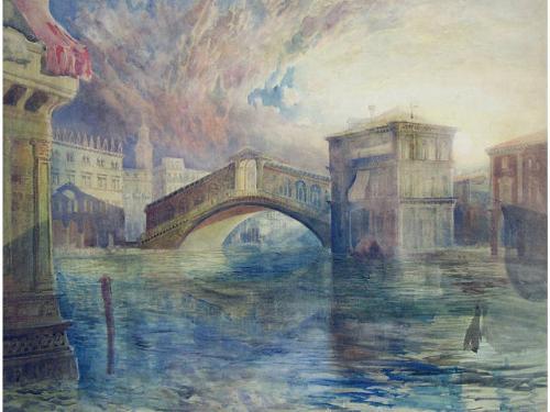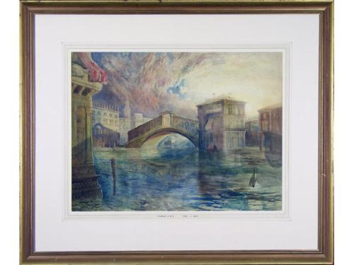 [British 1799-1870] UNTITLED (RIALTO BRIDGE-GRAND CANAL-VENICE) Watercolour on paper 16.75 x 22.25 ins. Provenance: Harrison Galleries, Vancouver