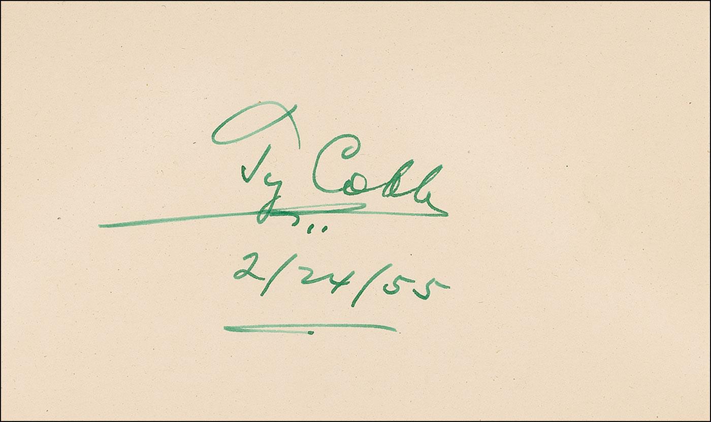 American boxer (1866–1933) who was the first gloved heavyweight boxing champion of the world from 1892 to 1897. Vintage matte-finish 7 x 9 photo of a stately Corbett in a tuxedo, signed and inscribed in pencil “To Robt Dunn from Your friend, Jas. J. Corbett.” Light smudging to the pencil signature, silvering to the darker areas, minor creasing and soiling, small tear to the top edge, and missing upper left and lower right corners, otherwise very good condition. Most of the flaws could be matted out if so desired. Pre-certified Steve Grad/PSA/DNA and RRAuction COA.