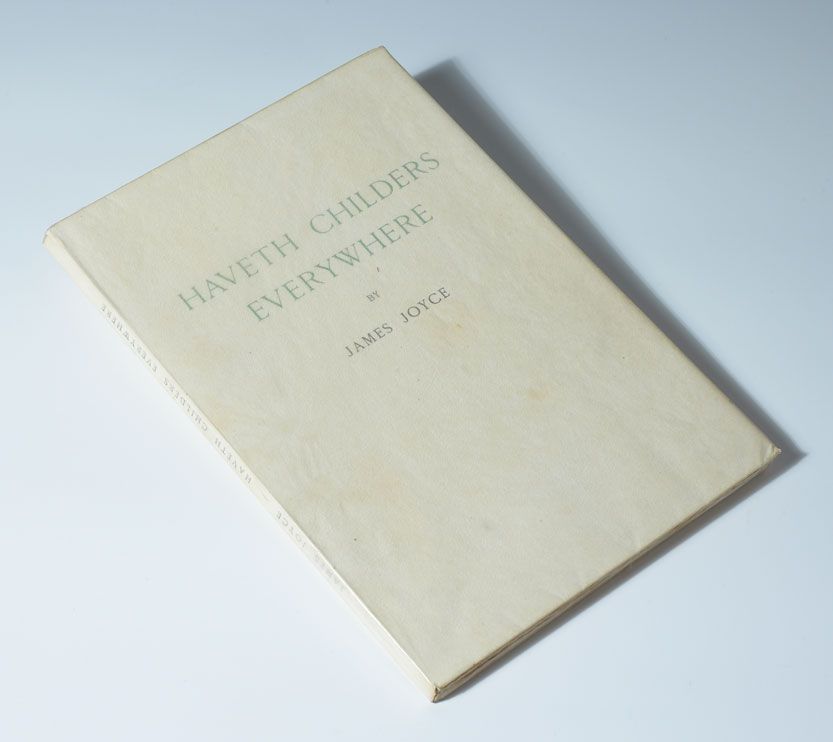 Published by Henry Babou and Jack Kahane, Paris, and the Fountain Press, New York, June 1930. Limited edition of 685 copies; the first one hundred of which were printed on imperial handmade iridescent Japanese velum and signed by Joyce in pencil on limitation page . This is no. 45. Printed and made in France by Ducros et Colas. Quarto; original wrappers printed in green and black, with glassine jacket.