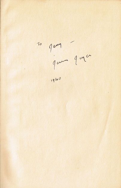 Faber and Faber, London, 1932. Octavo; original pale green papered boards, original dust jacket.An excellent first edition example complete with fragile dust jacket. Signed on endpaper 'To Jenny - James Joyce 1940'