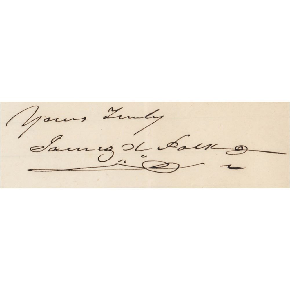 ALS as president, one page, 8 x 10, June 15, 1845. Handwritten letter to "Hon. R. J. Walker, Sec. of the Treasury," in full: "I have an important letter from‰Û_Maj'r Donelson, of the 4th Inst.‰ÛÓCan you call on me at Coleman's before 11 o'clock this morning?" In fine condition, with a short split to the end of one of the intersecting folds.