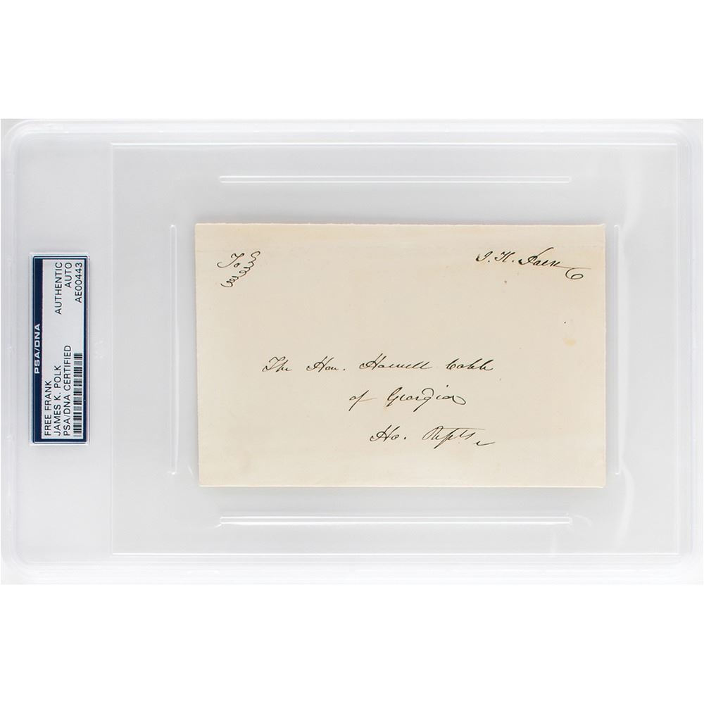 Hand-addressed and free franked mailing envelope, 5.75 x 3.75, addressed in Polk's own hand to "The Hon. Howell Cobb, of Georgia, Ho. Repts," and franked in the upper right corner, "J. K. Polk." Reverse retains the original red wax seal. In fine condition, with light creasing along the top edge. Howell Cobb was a southern Democrat and Georgia politician (1815–1868) who served a Secretary of the Treasury under President James Buchanan. He additionally acted as a congressman, as Speaker of the House, and as the state's 40th Governor, but is perhaps best known as one of the founders of the Confederacy, having served as the President of the Provisional Congress of the Confederate States.