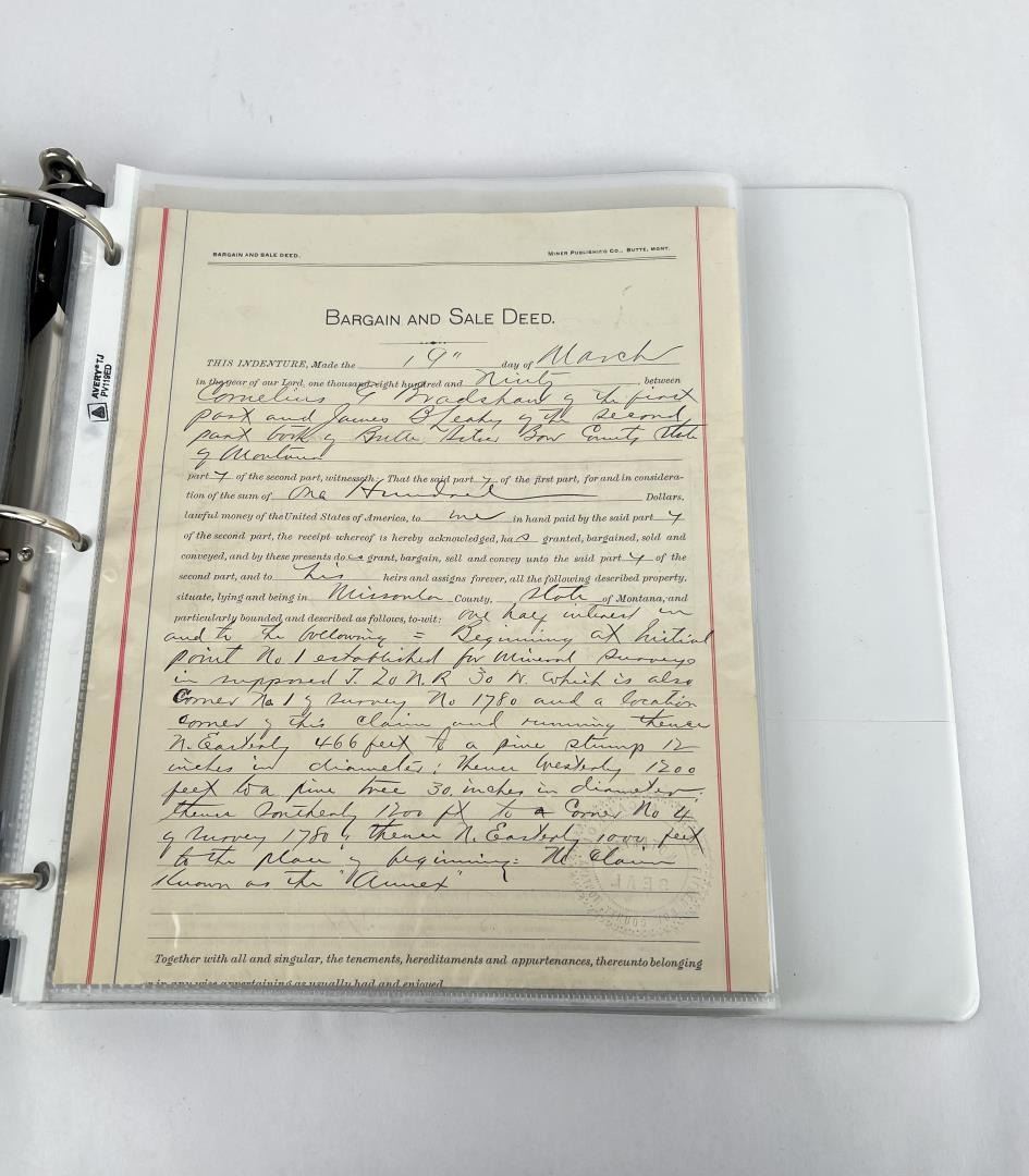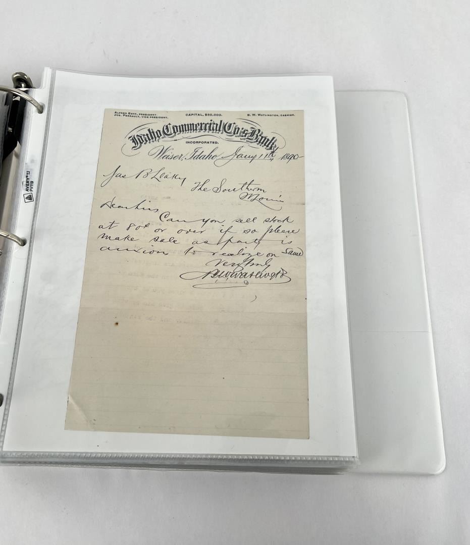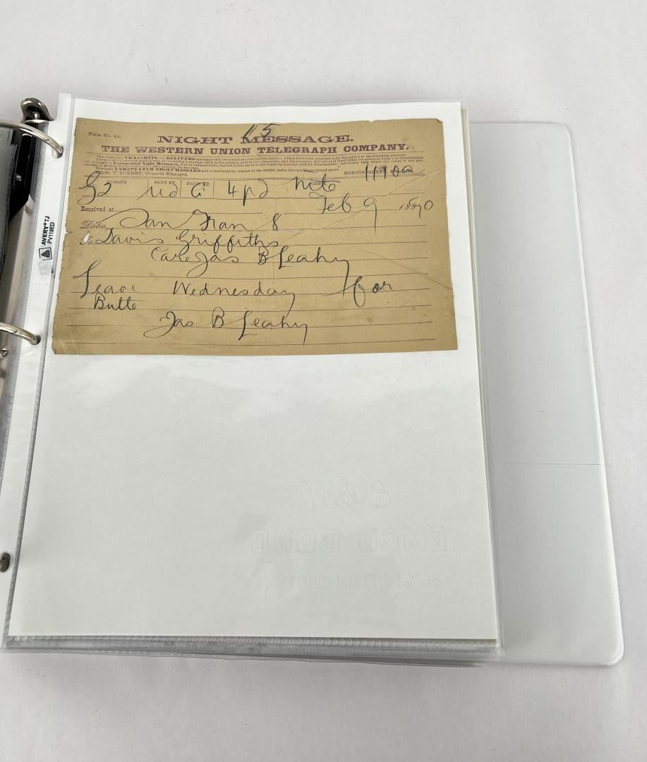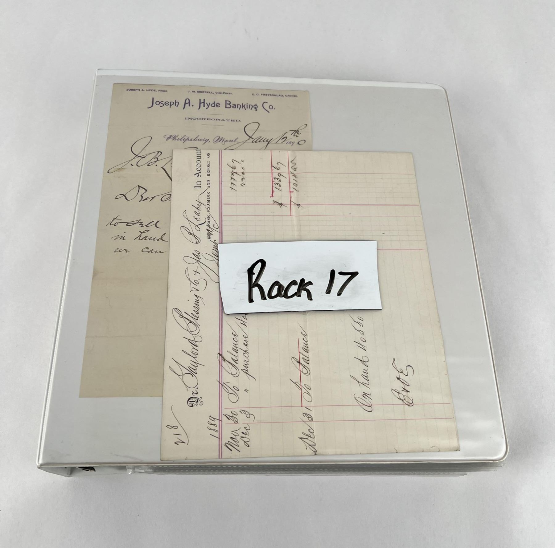 100 items from James B Leahy from September, 1889 through April, 1890 James B. Leahy was a very prominent figure in the Montana mining industry. He was involved in many different aspects of the mining industry throughout his career. First and foremost, he was a mining stock promoter in Butte. He was responsible for promoting stocks of many important Montana mining companies including, but not limited to, Moulton, Flint Creek, West Granite, Black Pine, Montana Fire Clay, and Granite Mountain. As a stock promoter, he worked closely with the stock brokerage company, Samuel Gaylord & Co. This collection is full of correspondence from many different individuals who were interested in buying stocks from Leahy. There is also correspondence from Samuel Gaylord & Co. about the current selling price of various stocks. These pieces of correspondence are a great window into the daily fluctuations of the mining stock market in Montana.