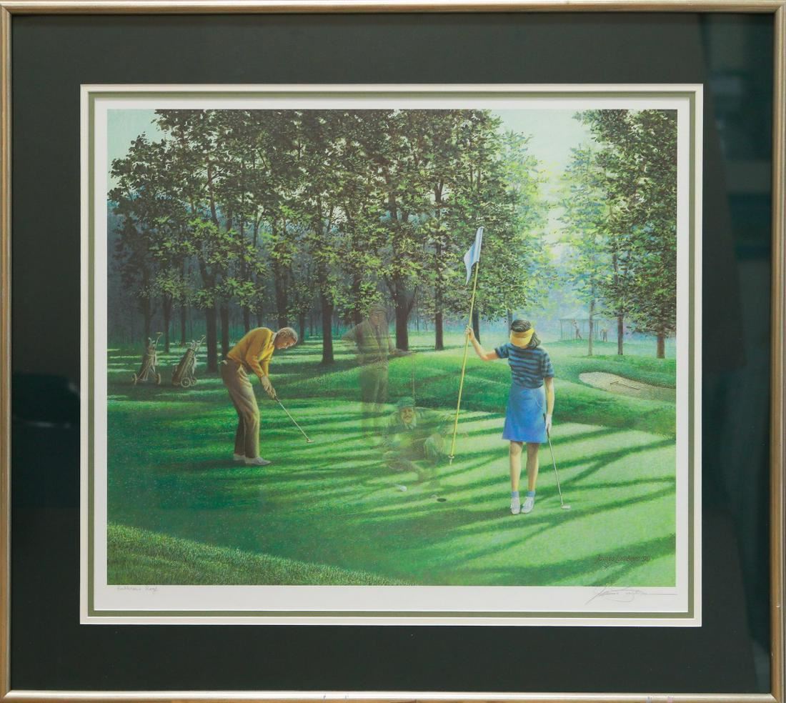 James Lumbers' "Playing Through" limited edition signed publisher's proof framed print. This has been professionally triple matted using acid free matting, and has been custom framed under glass.