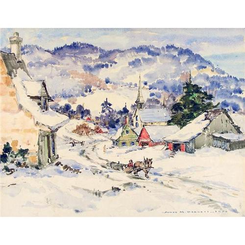 Canadian [1884-1957] WINTER SLEIGHRIDE, QUEBEC TOWNSHIP; 1956 watercolour on paper 14 x 17.75 in. (35.6 x 45.1 cm) signed & dated