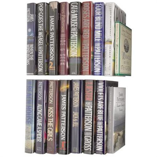 <B>James Patterson: 17 Signed First Editions,</B></I> including: <I>1st to Die </B></I>signed on the title page;<I> Four Blind Mice </B></I>signed on the title page; <I>Along Came a Spider </B></I>signed on the title page; <I>Cradle and All </B></I>signed on the title page; <I>Roses Are Red </B></I>signed on the title page;<I> Violets Are Blue </B></I>signed on the title page; <I>Pop Goes the Weasel </B></I>signed on the title page; <I>When the Wind Blows </B></I>signed on the title page; <I>Kiss the Girls </B></I>signed on the title page;<I> Cat & Mouse </B></I>signed on the title page;<I> Hide & Seek </B></I>signed on the title page;<I> Jack and Jill </B></I>signed on the title page;<I> Suzanne’s Diary for Nicholas</B></I> signed on the title page; <I>The Jester </B></I>with Andrew Gross signed by Patterson on the title page;<I> 2nd Chance</B></I> with Andrew Gross signed and dated by Patterson on the title page; <I>Miracle on the 17th Green</B></I> with Peter de Jonge signed by Patterson on the title page; <I>The Beach House</B></I><B> </B></I>with Peter de Jonge signed and dated by Patterson on the title page. All books have original dust jackets. Most are in fine condition; all are in very good or better condition. An instant collection of signed Patterson first editions.<BR><BR><b>Shipping:</b> Books & Catalogs (<a target="_blank" href="http://www.heritageauctions.com/common/shipping.php">view shipping information</a>)