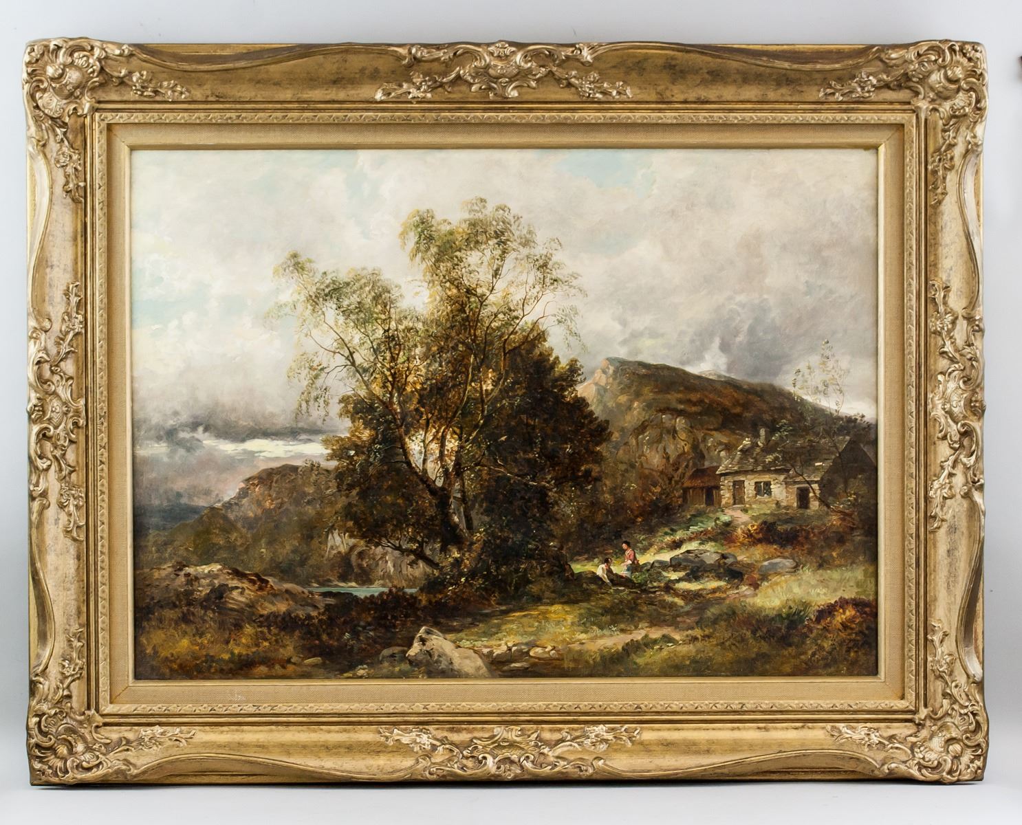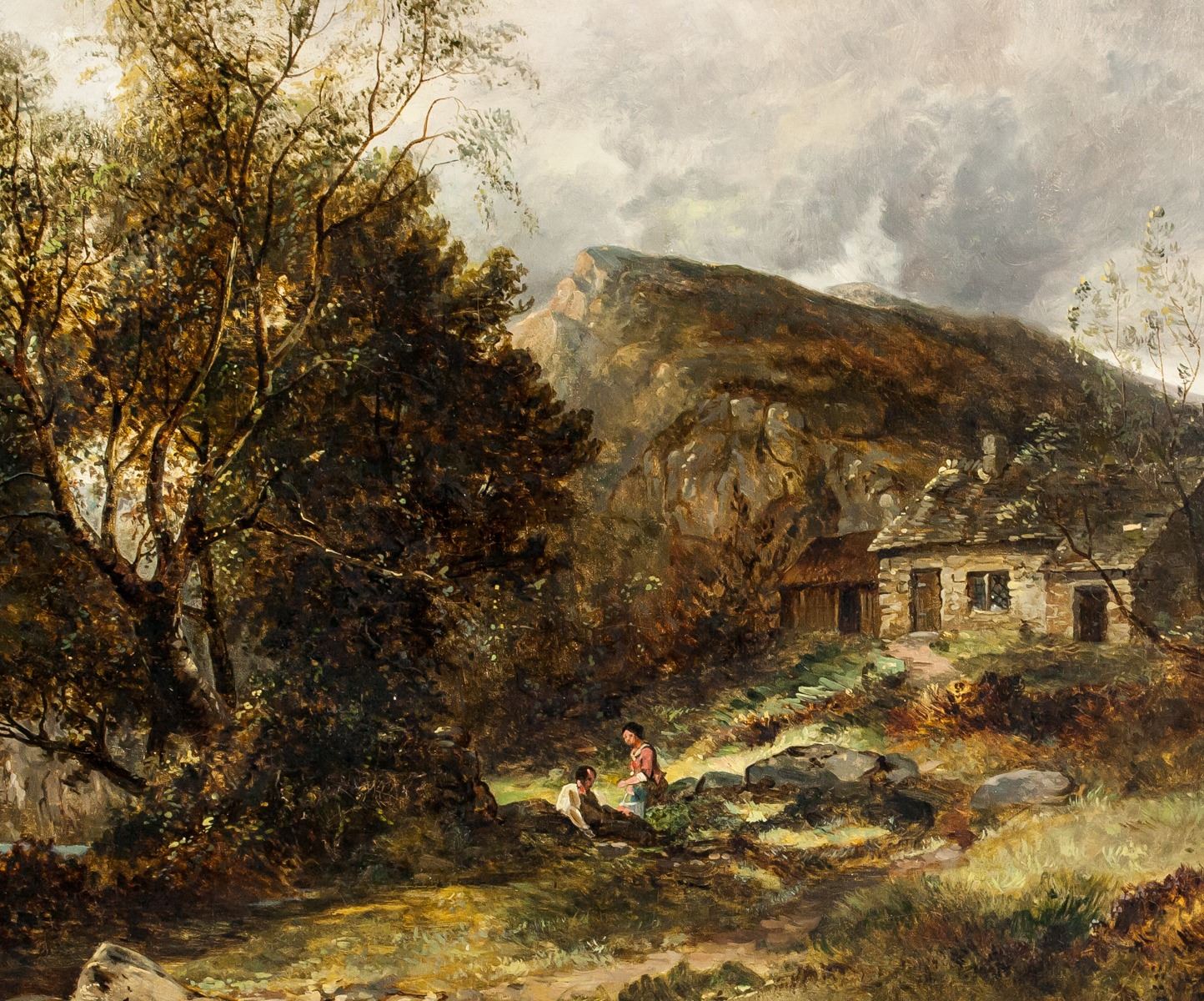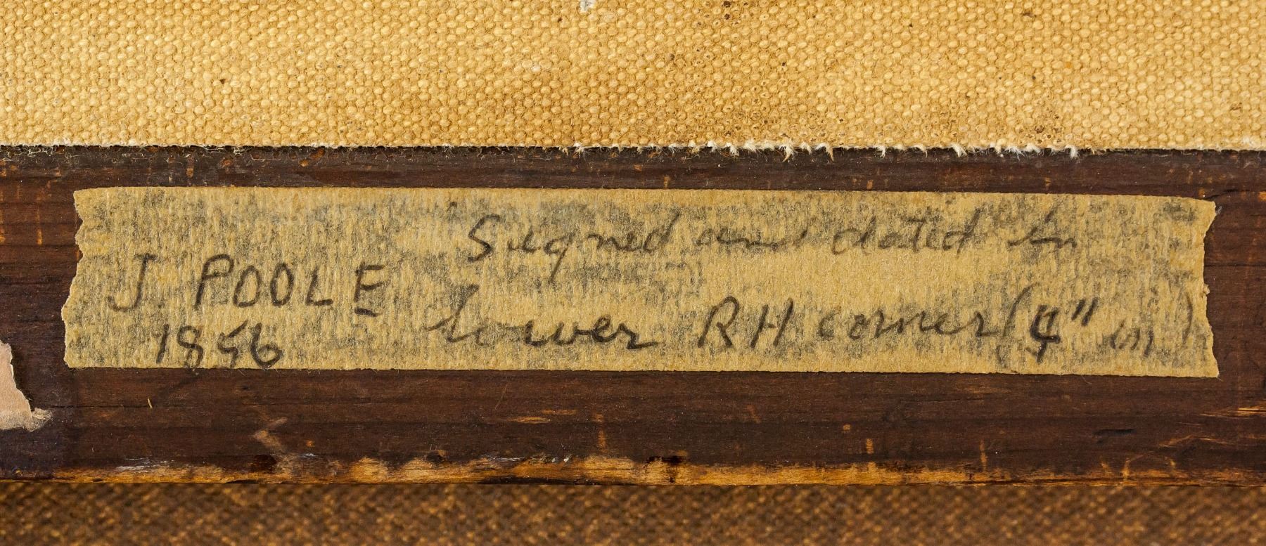 Oil on canvas, framed. Featuring landscape scene with a lake to the left and a house to the right. Signed J Poole in lower right corner, inscribed with 1850 beneath signature. Attributed to James Poole (1804-1886, British). 49 x 70 cm (19 x 27.5 in), Frame: 71 x 80 cm (28 x 31.5 in). PROVENANCE: This lot carries limited provenance from a Private Toronto collection