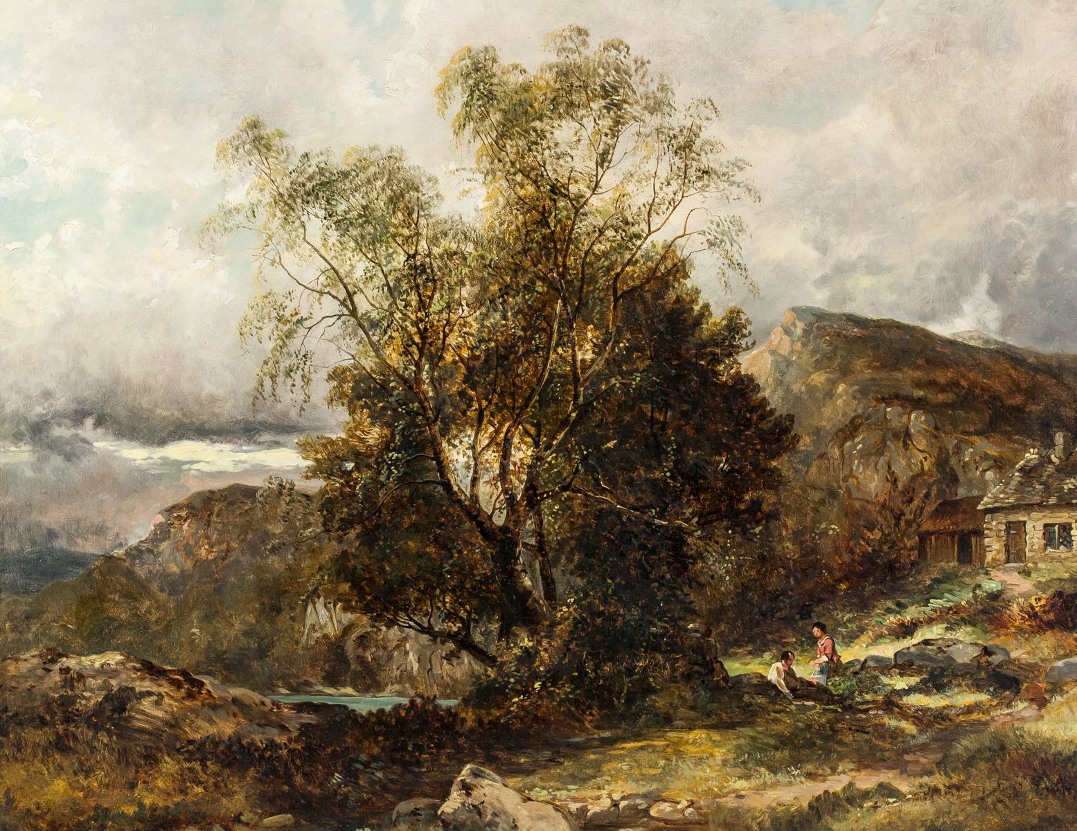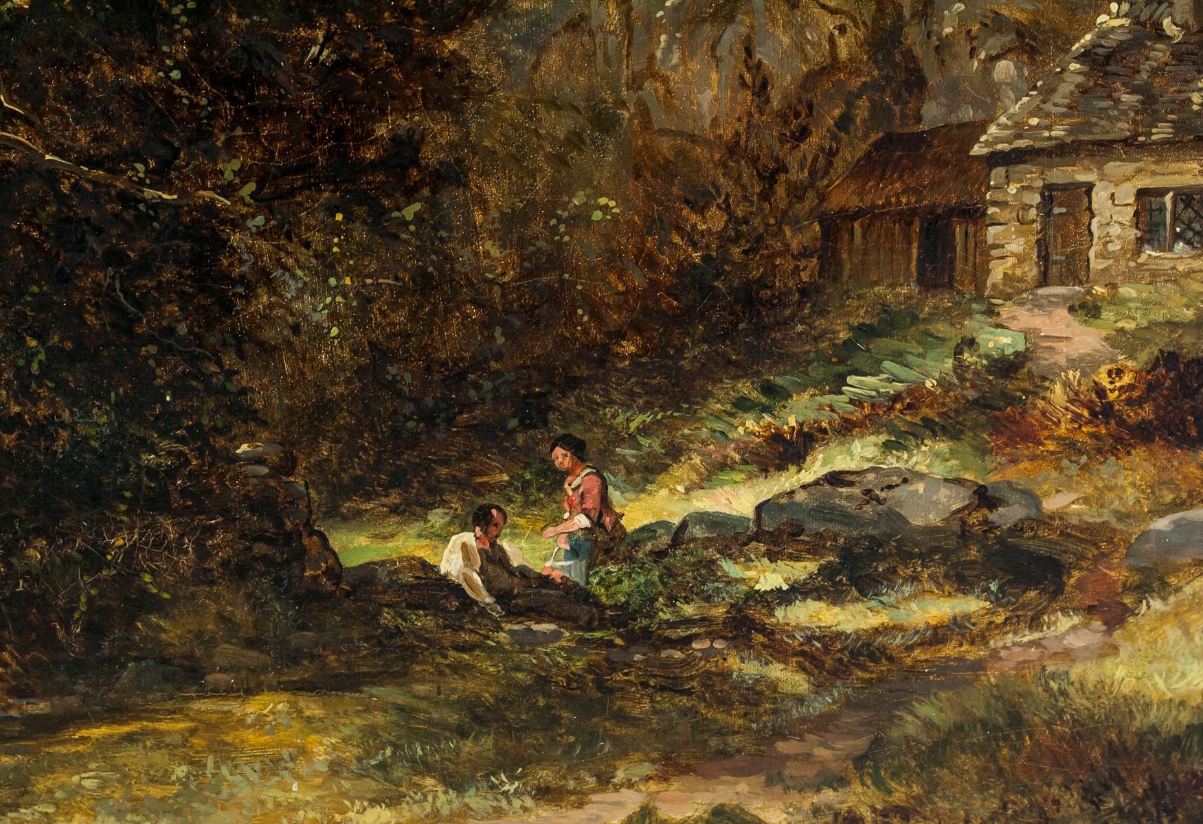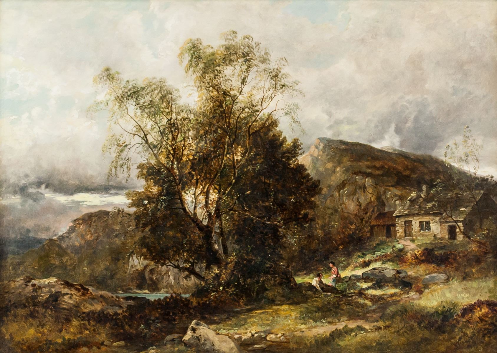 Oil on canvas, framed. Featuring landscape scene with a lake to the left and a house to the right. Signed J Poole in lower right corner, inscribed with 1850 beneath signature. Attributed to James Poole (1804-1886, British). 49 x 70 cm (19 x 27.5 in), Frame: 71 x 80 cm (28 x 31.5 in). PROVENANCE: This lot carries limited provenance from a Private Toronto collection