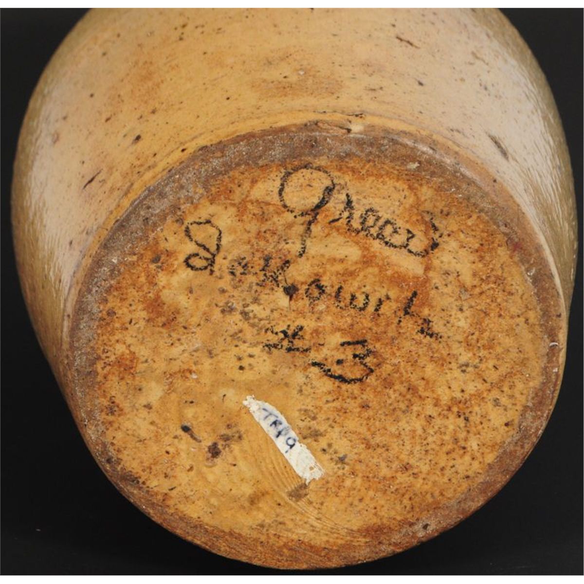 Stoneware Pitcher, James Prothro. From the Georgeanna Greer Collection. Purchased in 1992. This pitcher is the EXACT one that is photographed on the back of the American Stoneware book. Also on page 42. 9-1/2".