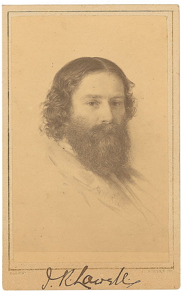 Original 2.5 x 4 carte-de-visite portrait of Lowell, by Allen of Boston, signed in the lower border in black ink, “J. R. Lowell.” In fine condition.