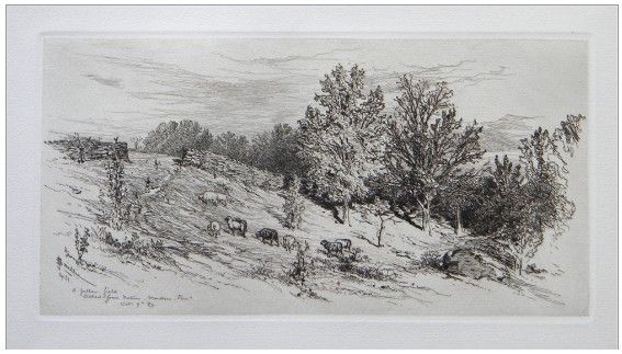 James Smillie original etching "A Fallow Field" - Medium: original etching. A fine impression in excellent condition on cream wove paper, executed in 1883 and published during the 1880's. Plate size: 6 x 11 5/8 inches - Professionally Framed & Matted - Comes With Certificate - -
