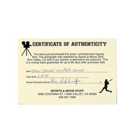 James Stewart Signed 8x10 black and white photo. Includes COA.