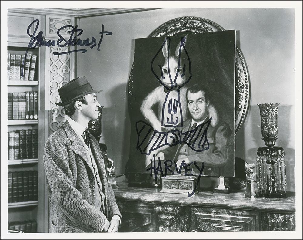 Glossy 10 x 8 photo from Harvey, signed in black felt tip, “James Stewart,” adding a Harvey sketch to the center of the photo. In fine condition.