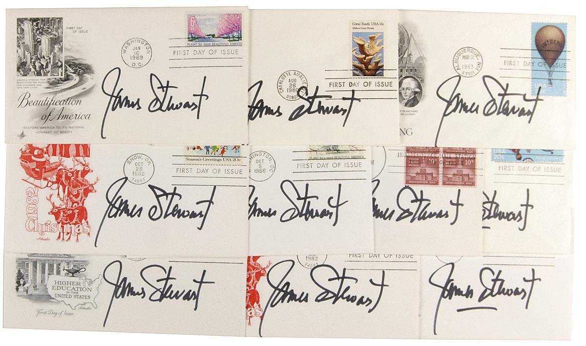 Ten FDCs with various cachets, each signed on the front in black felt tip, “James Stewart.” In overall fine condition.