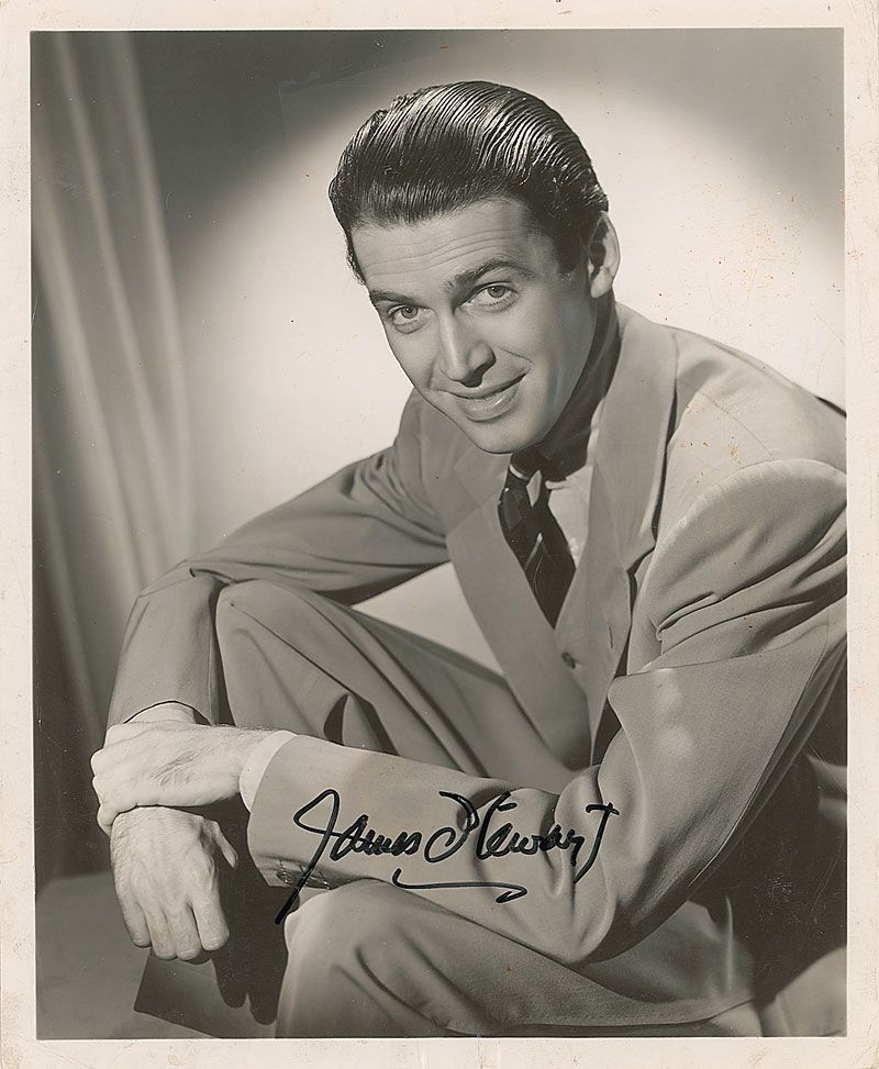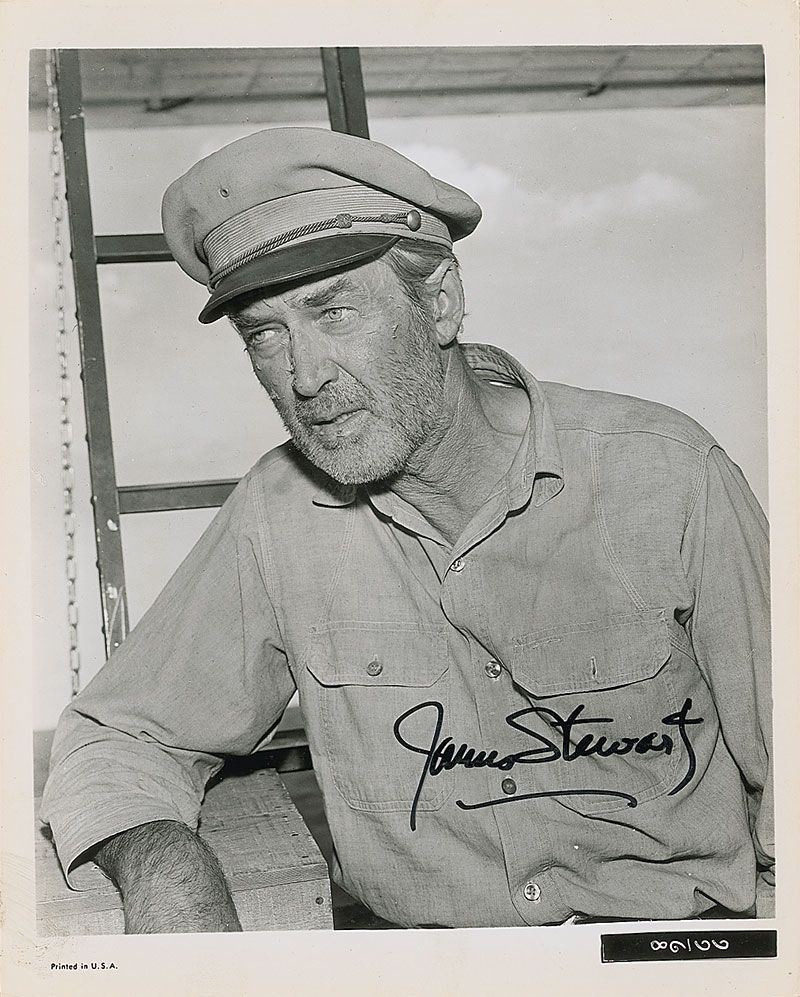 Two different glossy 8 x 10 photos from Stewart’s long career, each signed in black felt tip. In very good to fine condition, with overall creasing and slight soiling to one photo.