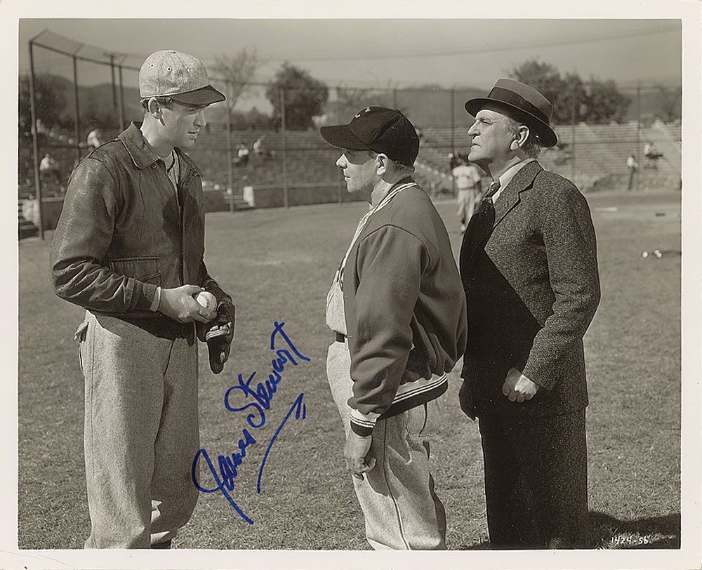 Vintage glossy 10 x 8 double-weight MGM publicity photo for The Stratton Story, signed later in blue felt tip. Reverse bears printed promotional information about the film. In fine condition, with some mild rippling.