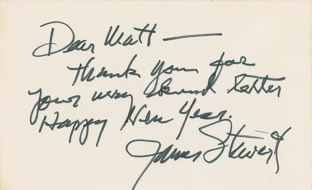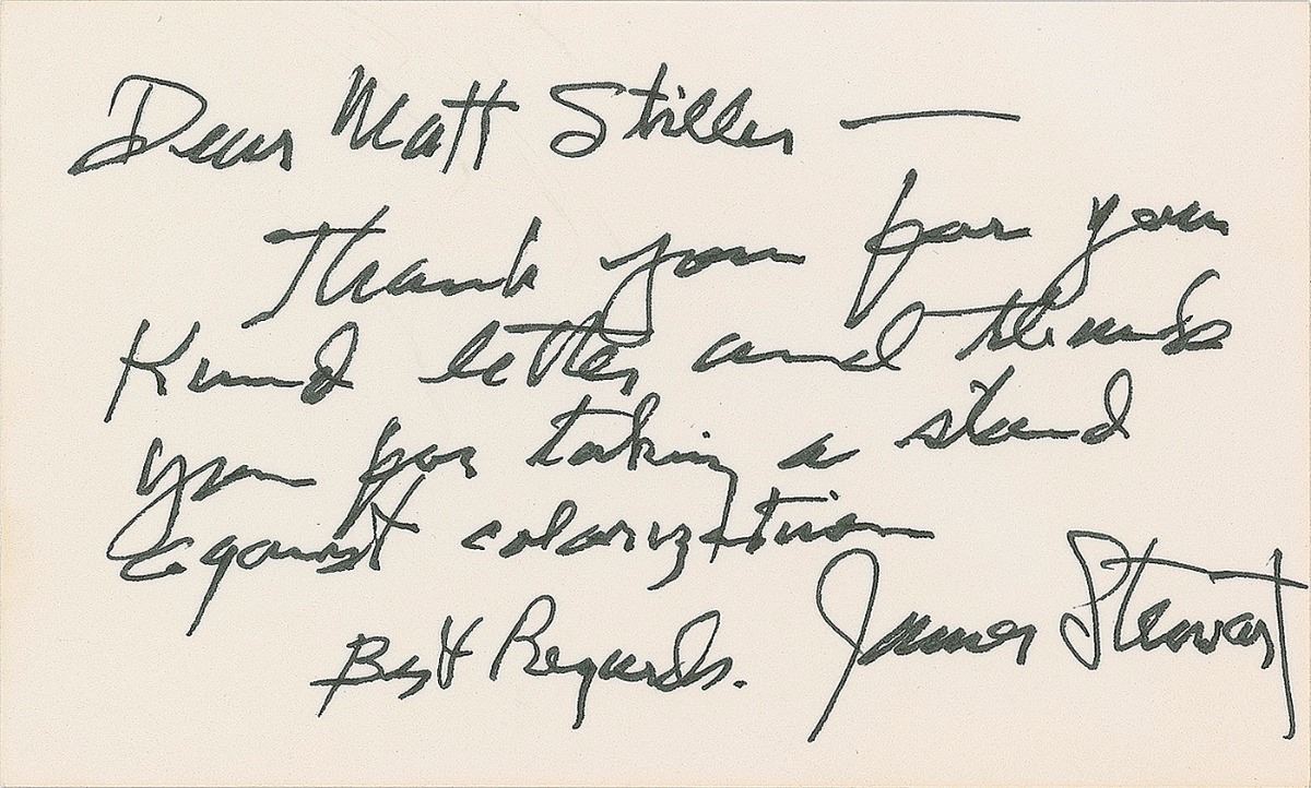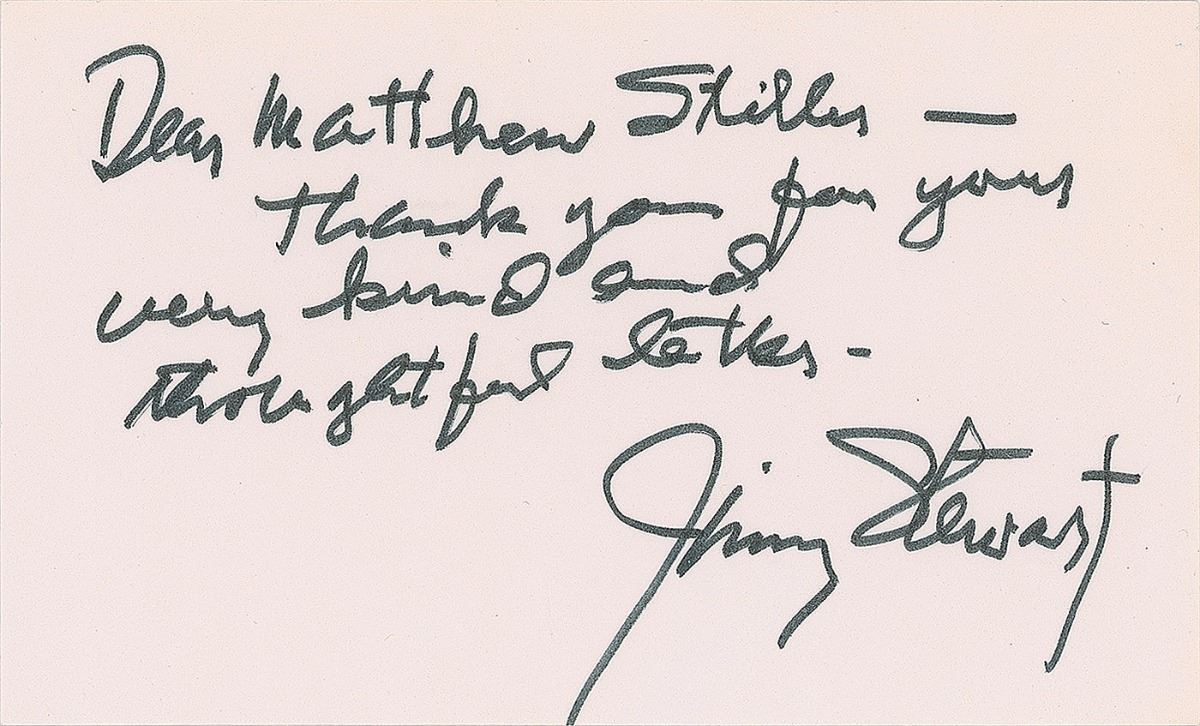 Three ANSs by Stewart on individual off-white 5 x 3 cards, one reading, in part: “Thank you for taking a stand against colonization.” The others offer thanks for kind letters. In overall fine condition.