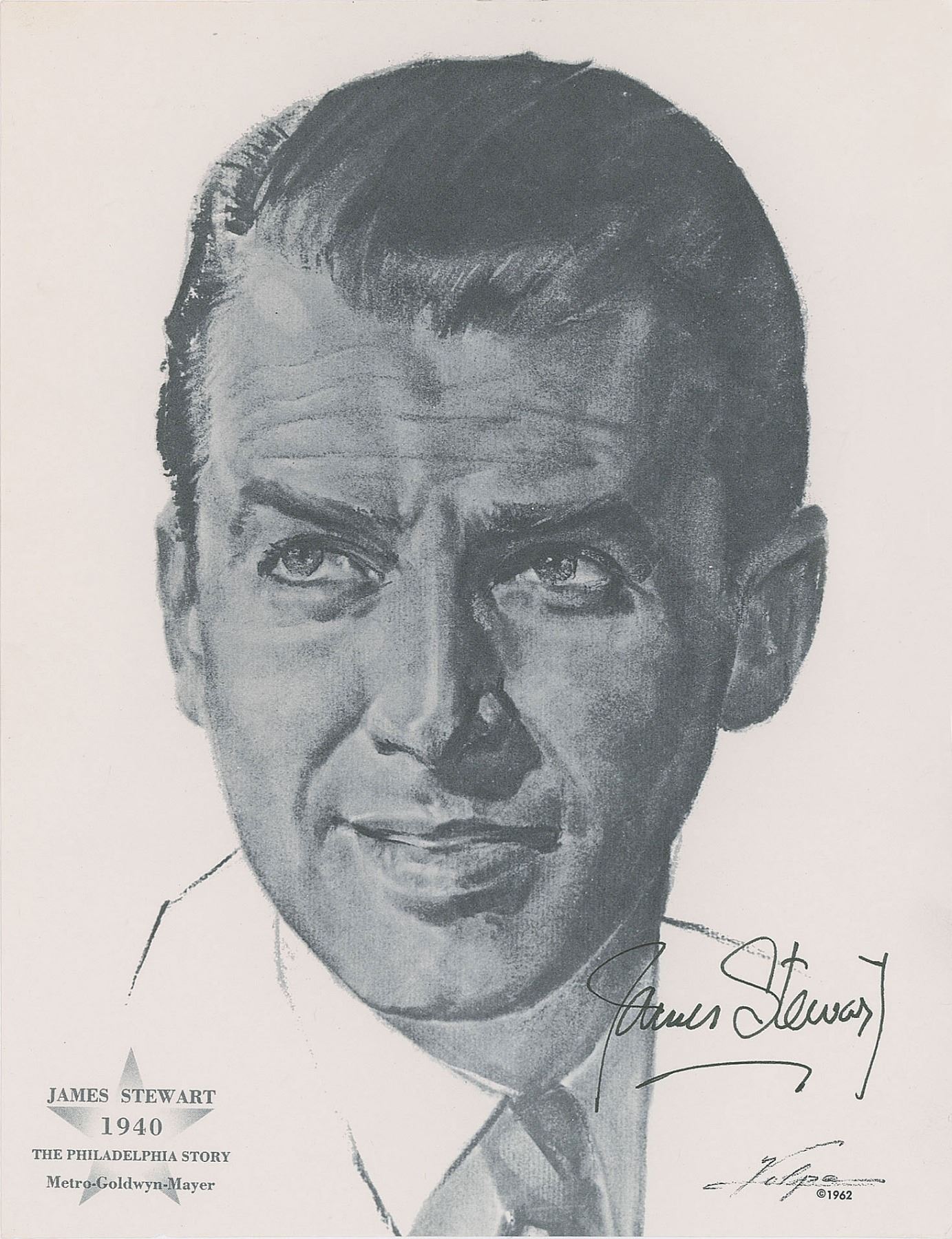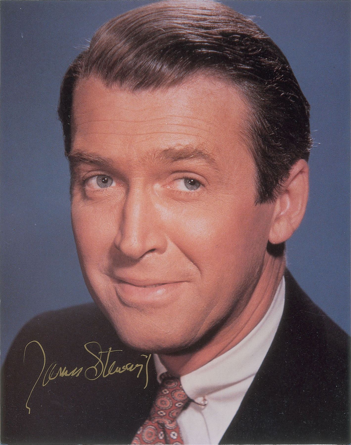 Two items: a color glossy 8 x 10 portrait of Stewart, signed in gold ink; and an 8 x 10.5 Volpe print of the actor, signed in black felt tip. In overall fine condition.