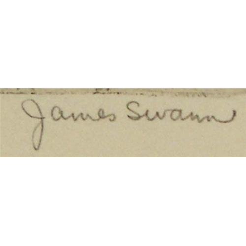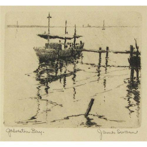 James Swann (1905-1985) (TX & IL) Etching, "Galveston Bay", image size 2 1/8" x 2 7/8", pencil signed