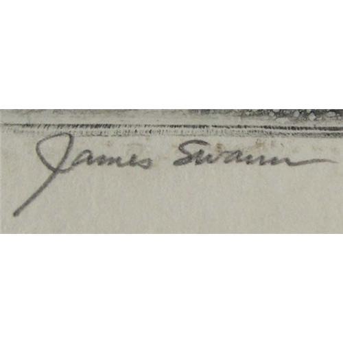 James Swann (1905-1985) (TX & IL) Etching, Winter Landscape, image size 4 1/4" x 3 5/8", pencil signed